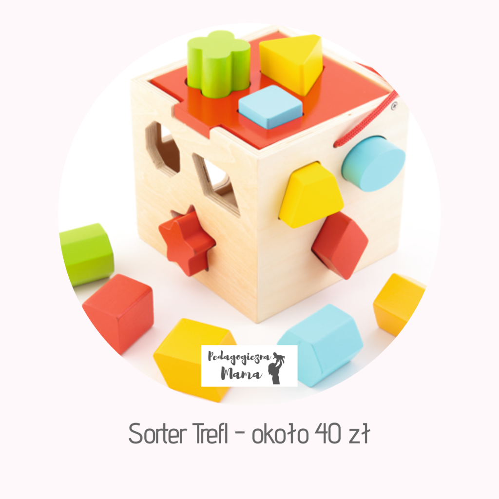 To propozycja dla dzieci, które zbliżają się do roku, ponieważ jest to trochę trudnejsza zabawka, jednak w naszym przypadku sprawdziła się już dużo wcześniej. Maluch próbował na swój sposób wrzucać kształty do pojemnika, aż pewnego dnia udało mu się wrzucić odpowiedni kształt do odpowiedniej dziurki. Często proponowałam mu tą zabawę i dawałam instrukcje.